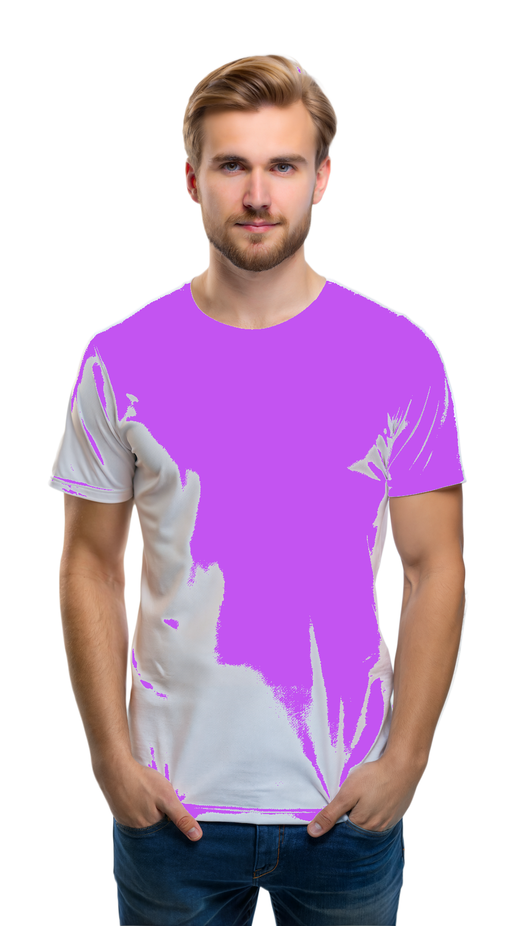 Description: A stylish #c354f1 t-shirt made from 100% cotton.